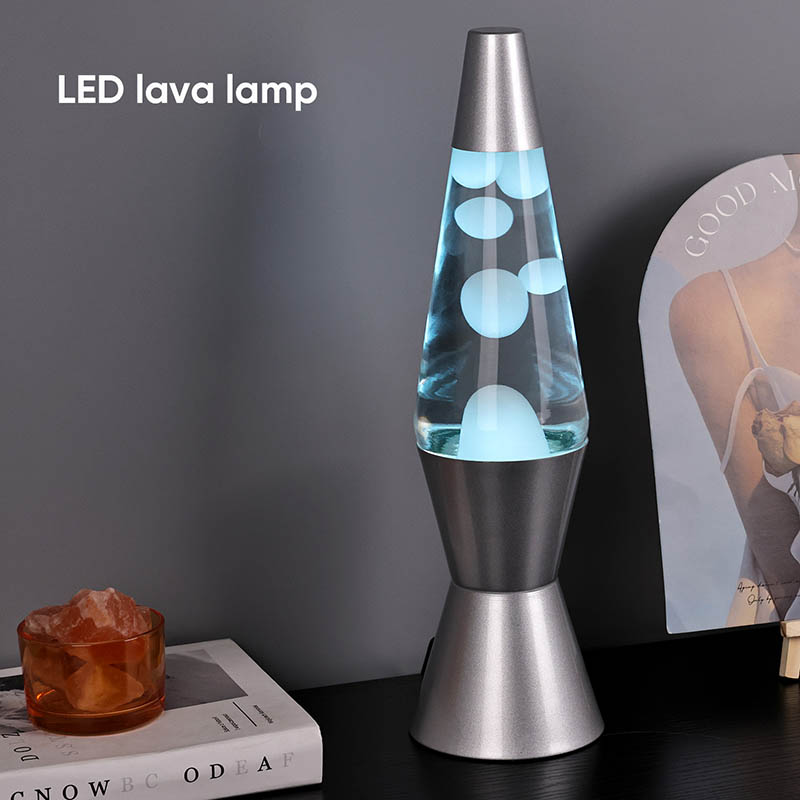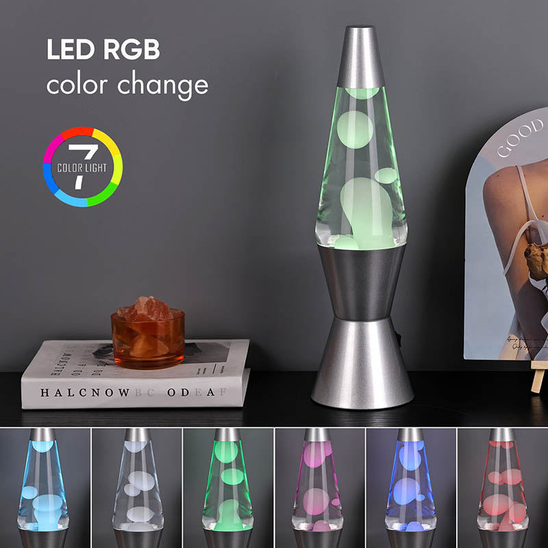 La lampe à lave LED RVB de 15 pouces a 7 couleurs changeantes dans le bas. la couleur est blanche avec la lave.