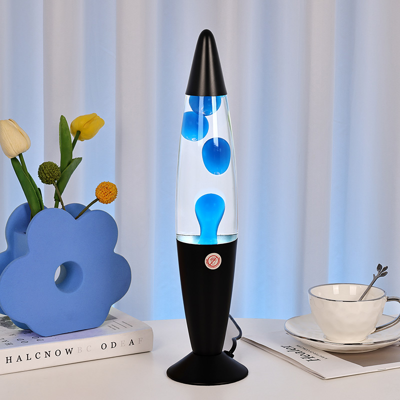 La lampe à lave bleue à abat-jour noir de 16 pouces est branchée à haute puissance. Coque en aluminium violet violet, cire violette, lorsqu'elle est allumée, lampe à cire violette pure.