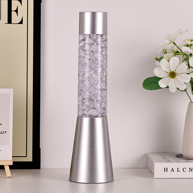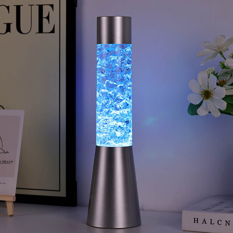La veilleuse à paillettes liquides à couleur changeante en forme de glace présente un design élégant et moderne avec une base métallique et une section supérieure transparente remplie de pièces colorées ressemblant à des cristaux. La base de la lampe est conçue pour être stable et élégante, complétant tout style de décoration intérieure. La section transparente abrite les pièces colorées qui bougent doucement, créant un effet visuel fascinant. La lampe est disponible en trois variations de couleurs différentes – rouge, bleu et vert – vous permettant de choisir la teinte parfaite qui correspond à votre décoration intérieure.