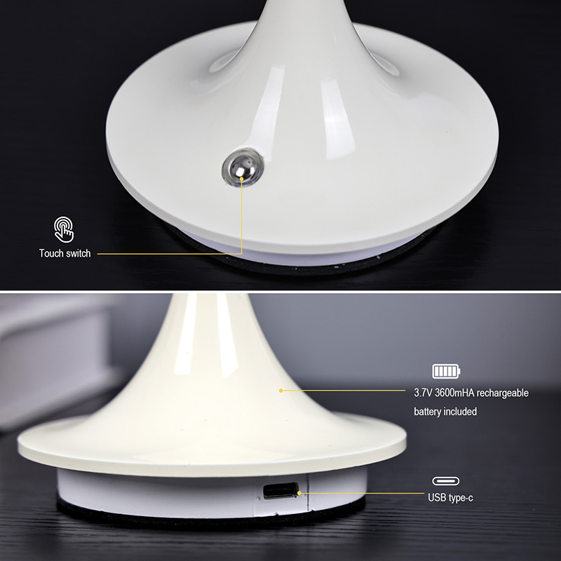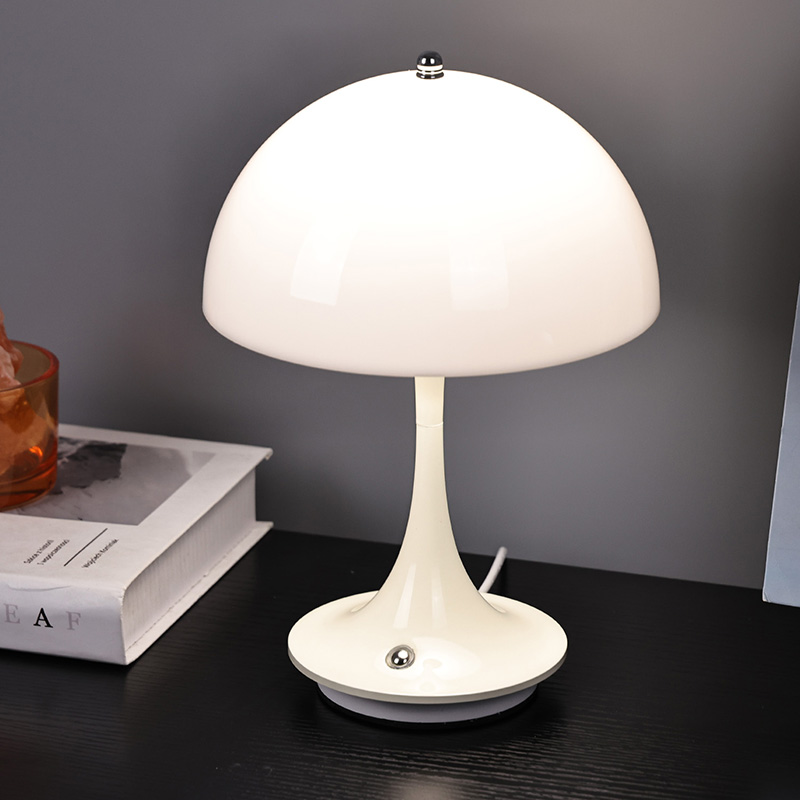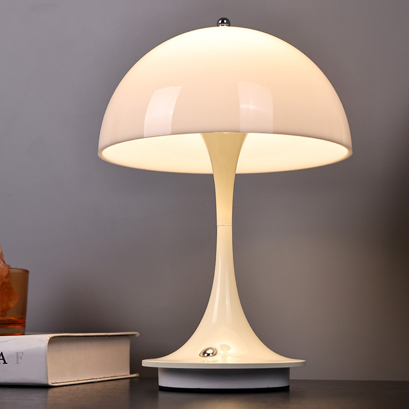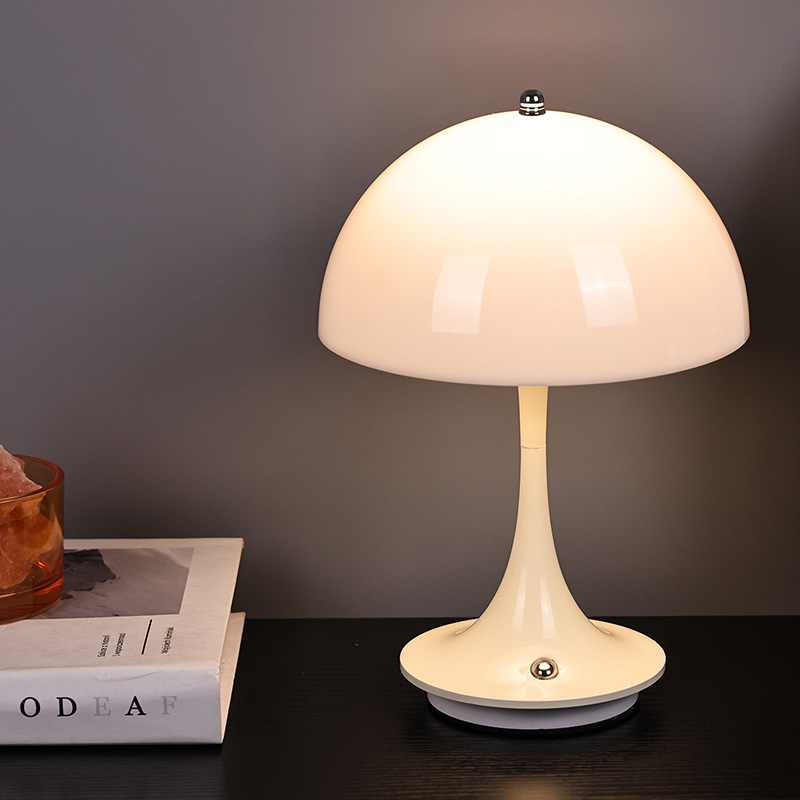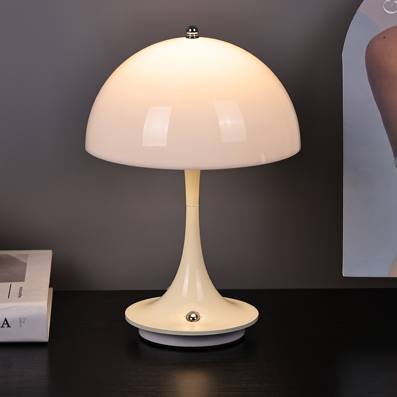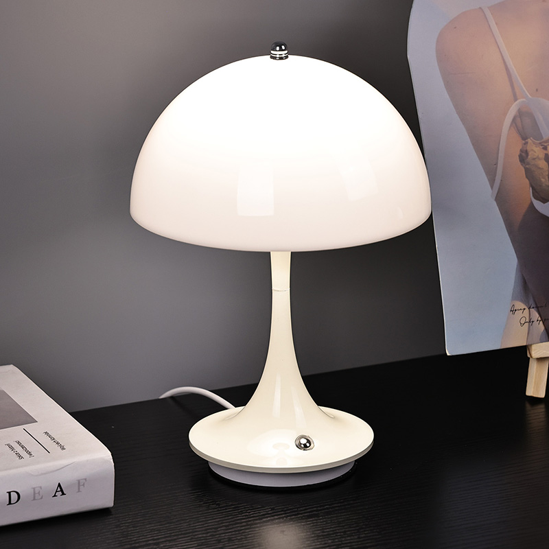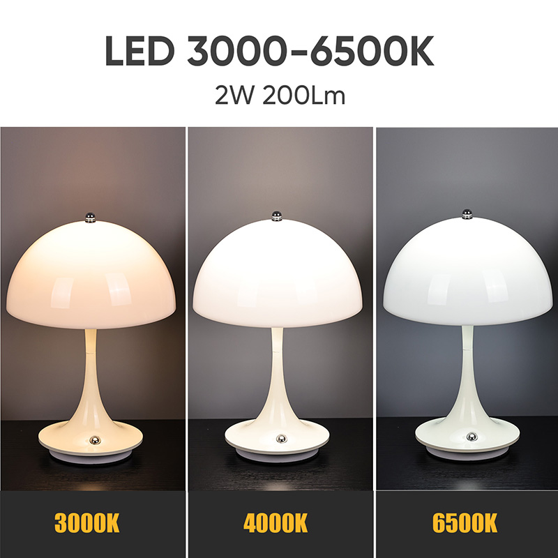 Les jolies lampes LED pour la maison avec abat-jour champignon ont une base en métal et un lampadaire en métal, ainsi qu'un abat-jour en plastique. La surface de l'abat-jour est cirée et lisse, avec un très bon toucher, ressemblant à un champignon