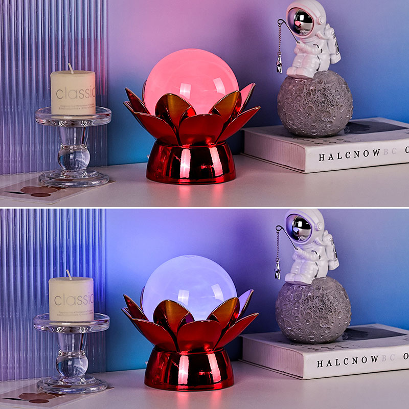 À l’intérieur du globe, un éclairage LED avancé offre un éclairage multicolore, permettant aux utilisateurs de personnaliser l’ambiance avec des teintes douces telles que le blanc chaud, le rose tendre, le bleu apaisant et le jaune doré. La fonction de changement de couleur peut être contrôlée manuellement ou réglée pour fonctionner automatiquement, offrant un affichage dynamique et captivant qui évolue au fil du temps. Cet éclairage d'ambiance est idéal pour les chambres à coucher, les salons, les espaces de yoga ou comme cadeau attentionné pour les proches qui apprécient la beauté et la tranquillité.