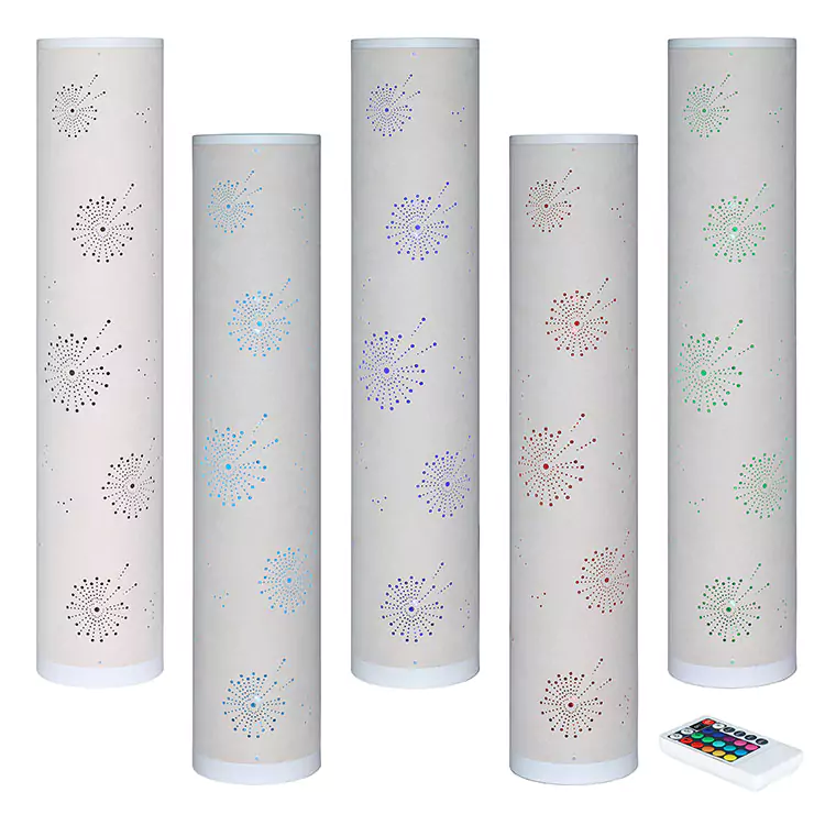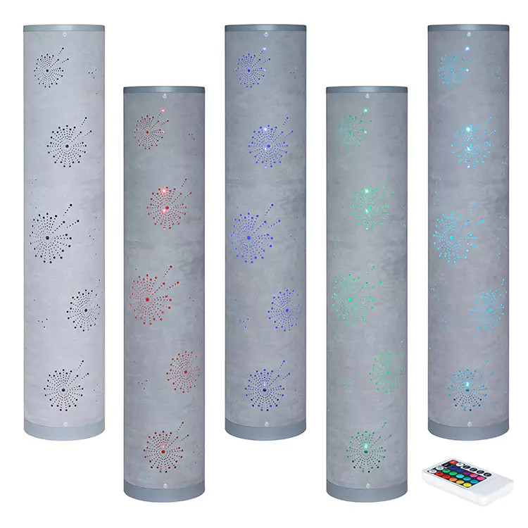 L'effet du lampadaire RVB en tissu au travail, le sol de la lampe peut changer de lampe de couleur différente. La caractéristique du lampadaire RVB en tissu est qu'il peut concevoir différents trous sur la couverture en tissu. La lumière RVB brille à travers le trou. L'intérieur est décoré de lumières de différentes couleurs
