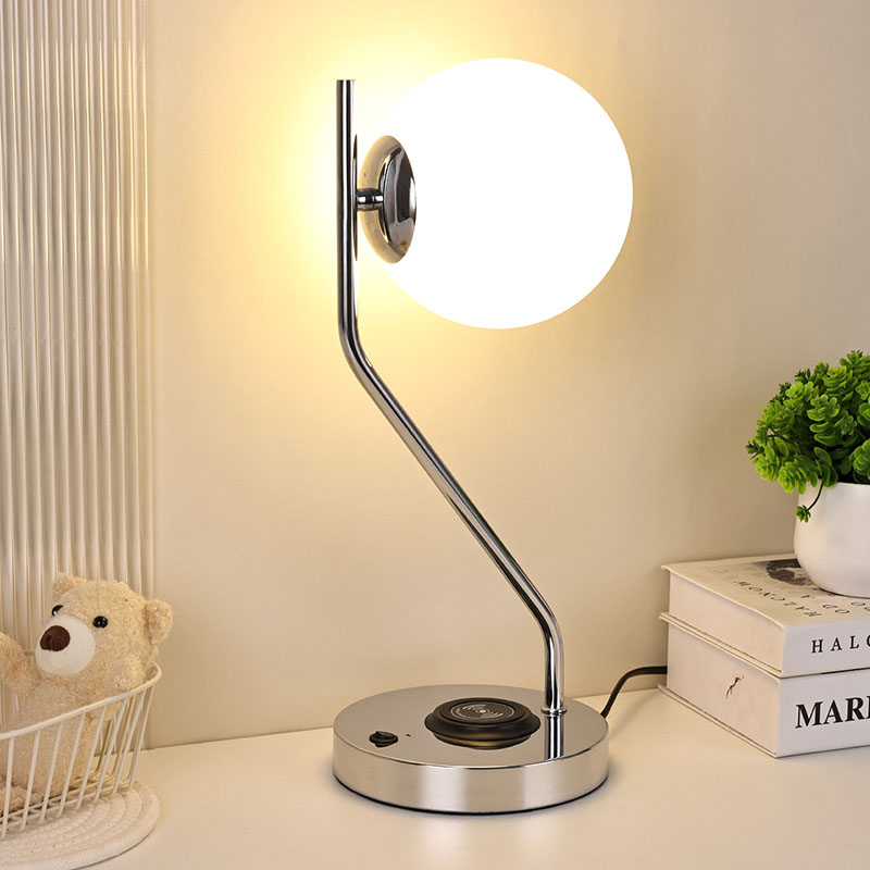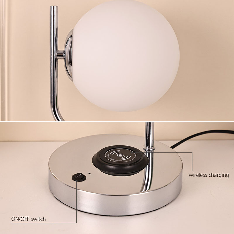 La lampe de bureau à abat-jour en verre avec chargeur sans fil est également équipée d'une base de chargement de téléphone portable sans fil en métal. Placez simplement doucement le téléphone compatible avec le chargement sans fil sur la base pour un chargement rapide, sans avoir besoin de tâches fastidieuses.