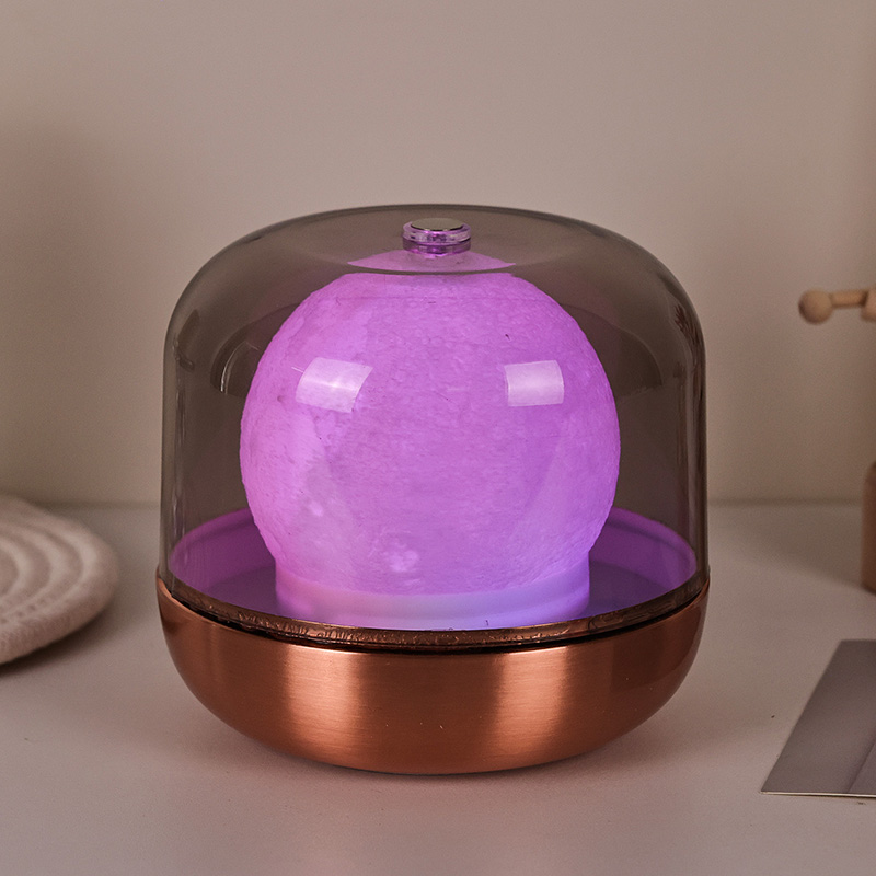 Le couvercle en verre transparent est positionné au-dessus de la sphère lumineuse centrale, améliorant non seulement la transparence visuelle mais conférant également un effet de lumière douce et diffuse, créant une ambiance intime et romantique.