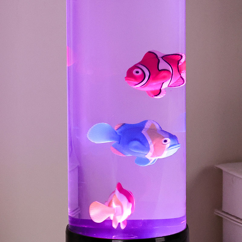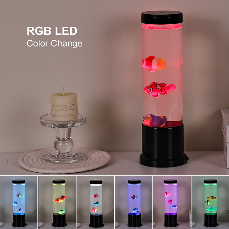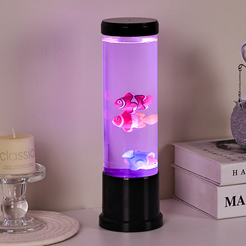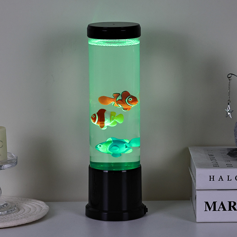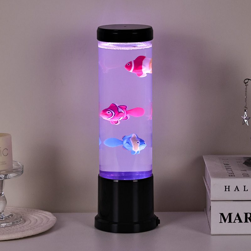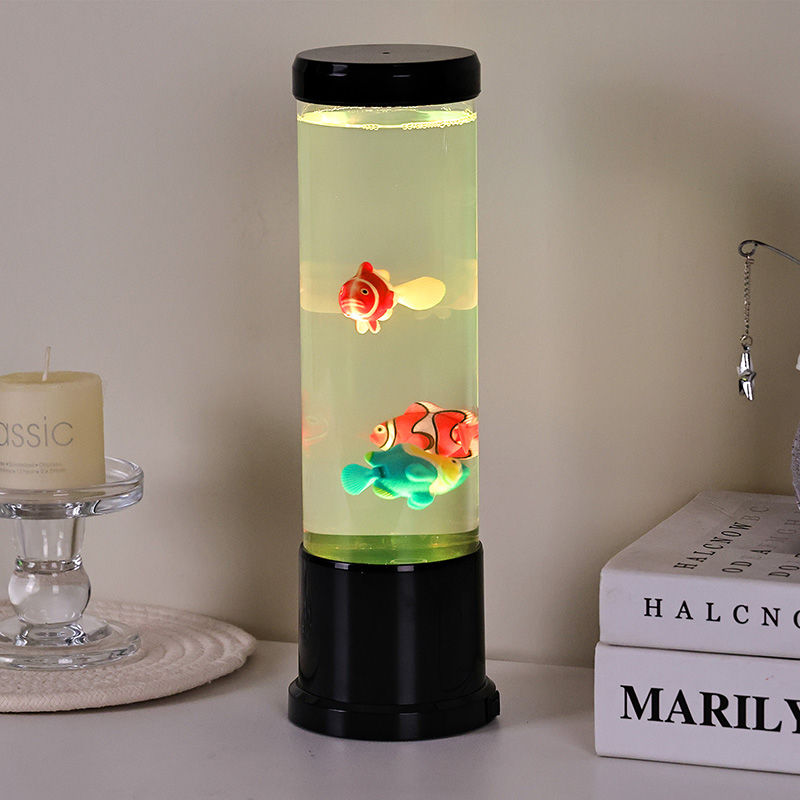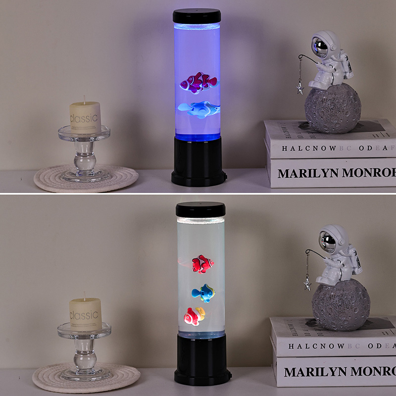 Au cœur de cette lampe se trouve une simulation soigneusement conçue d’un véritable aquarium. À l’intérieur de la colonne transparente, vous trouverez des poissons flottants magnifiquement détaillés, tels que des poissons-clowns vibrants et d’autres espèces tropicales, qui se déplacent et nagent doucement dans le liquide semblable à de l’eau. L'ajout de méduses brillantes améliore l'illusion magique sous-marine, pulsant doucement avec une lumière éthérée. La combinaison du mouvement et de la couleur crée une scène dynamique qui captive l'attention et apporte la paix à votre environnement.