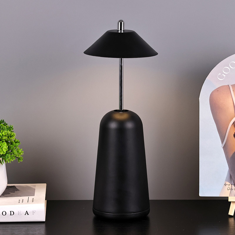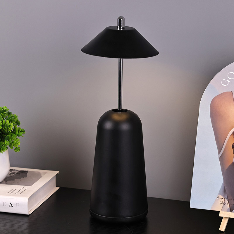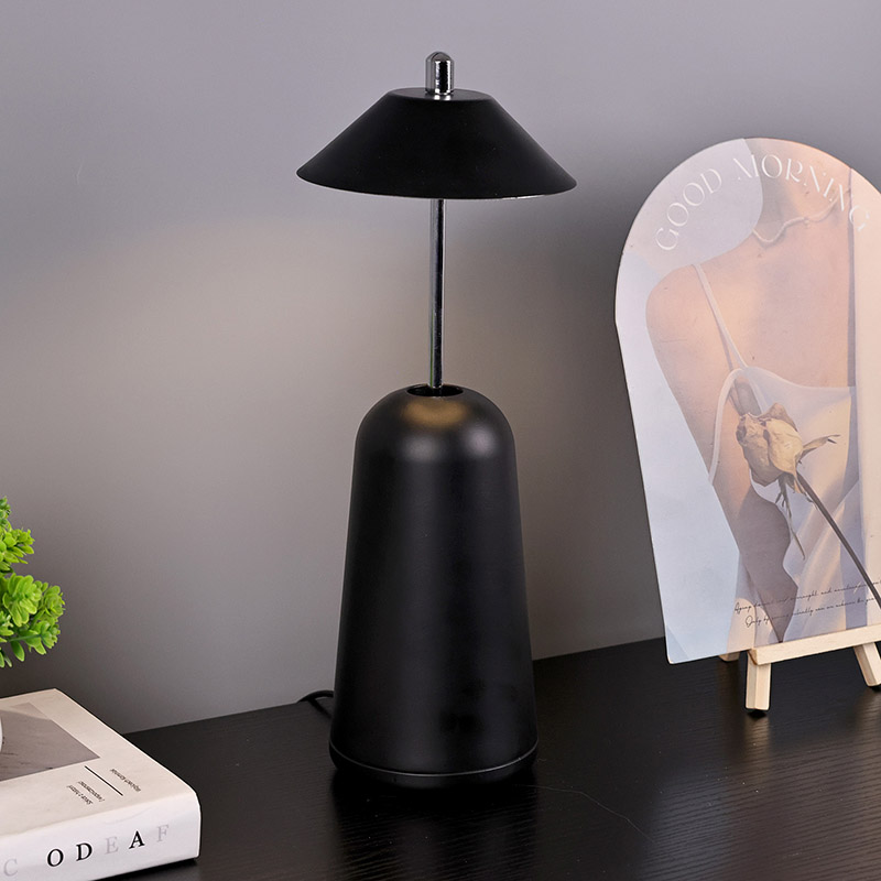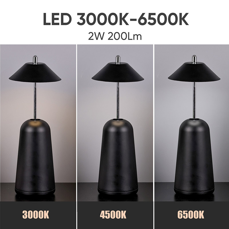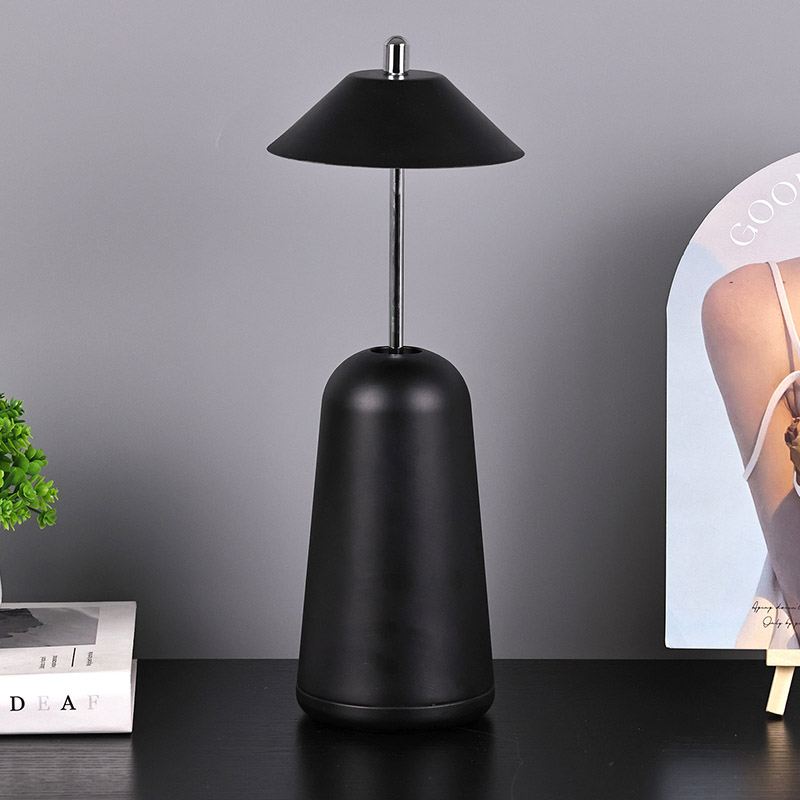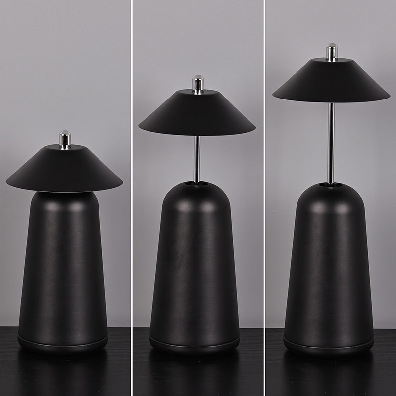 La lumière de la lampe de bureau LED moderne avec abat-jour réglable est découpée à l'intérieur de l'abat-jour, avec des couleurs chaudes et trois niveaux d'intensité lumineuse allant de 3 000 K à 6 500 K. Le haut de l'abat-jour est un interrupteur tactile, semblable à une antenne. La base est composée de métal cylindrique irrégulier