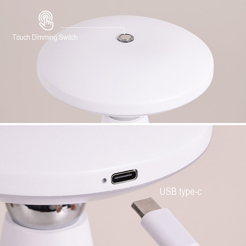 Gradateur tactileLampe de bureau LED champignon avec batterie rechargeable avec ses lignes simples et douces et sa forme ergonomique, sa conception en forme de champignon et en queue d'aiguille, et sa lampe de bureau LED à lumière chaude en métal, n'est pas seulement un outil d'éclairage pratique,