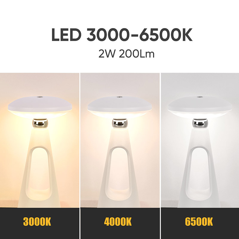 La lampe de bureau LED Mushroom avec batterie rechargeable est équipée d'une source de lumière LED avancée, qui émet une lumière douce et chaude et peut ajuster l'intensité de la lumière. La gradation infinie peut protéger efficacement vos yeux. Grâce à des opérations simples
