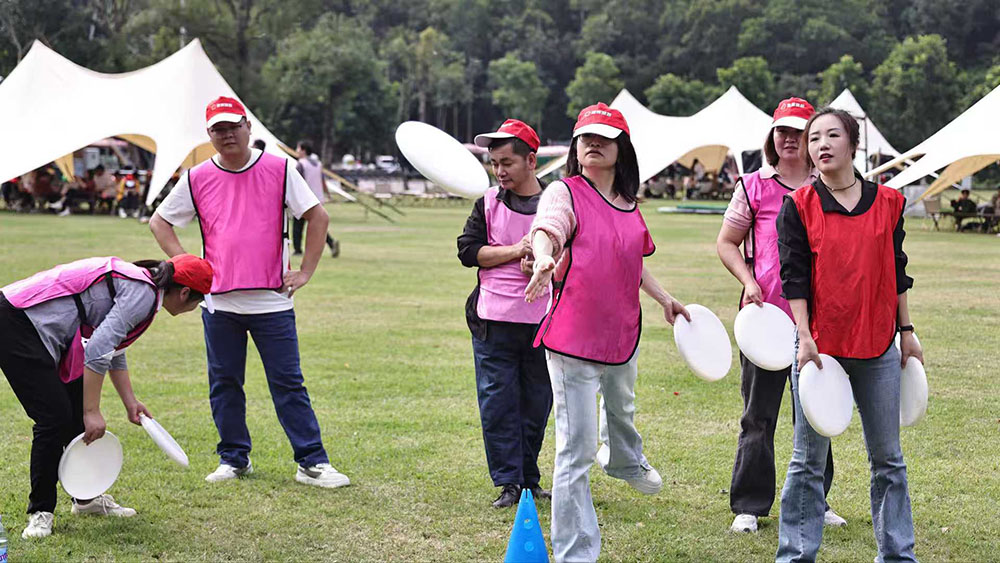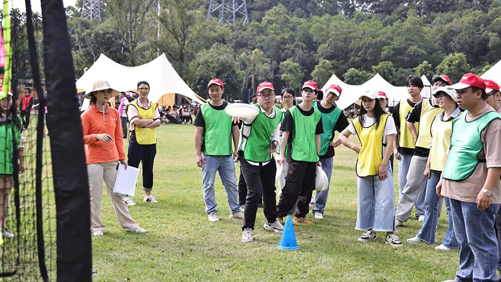Cinquième projets : Frisbee Nine Palace Grid 🥏 Règle : lancez un frisbee à 3 mètres de distance, abattez la Nine Grid Plate et marquez 3 chances par personne. Accumulez un score élevé pour gagner. Durée : 20 minutes. Point culminant : Compétition précision contre chance !