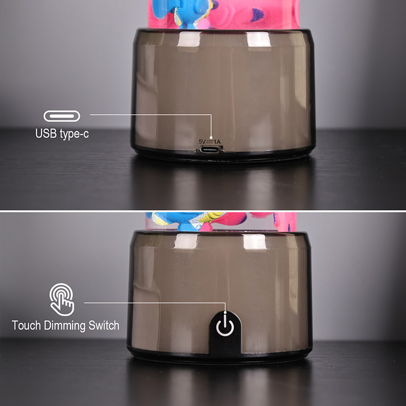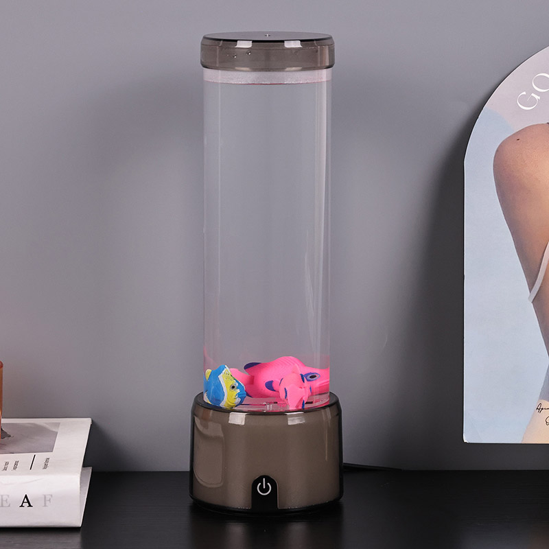 La base de la lampe poisson est équipée d'une base transparente à changement de couleur RVB, qui peut émettre plusieurs couleurs de lumière, ce qui donne à l'ensemble du corps de la lampe un effet coloré. Couleur après avoir allumé l'interrupteur