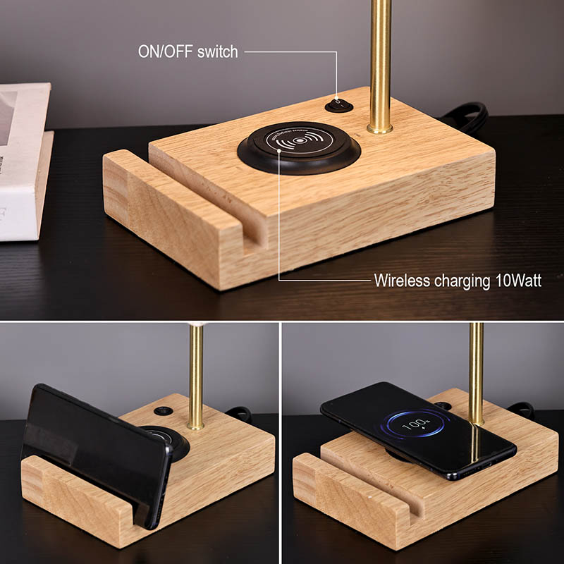 Chargement sans fil 10 wattsÉlevez votre espace avec le style et la fonctionnalité ultimes : la lampe de table LED de style naturel traditionnel