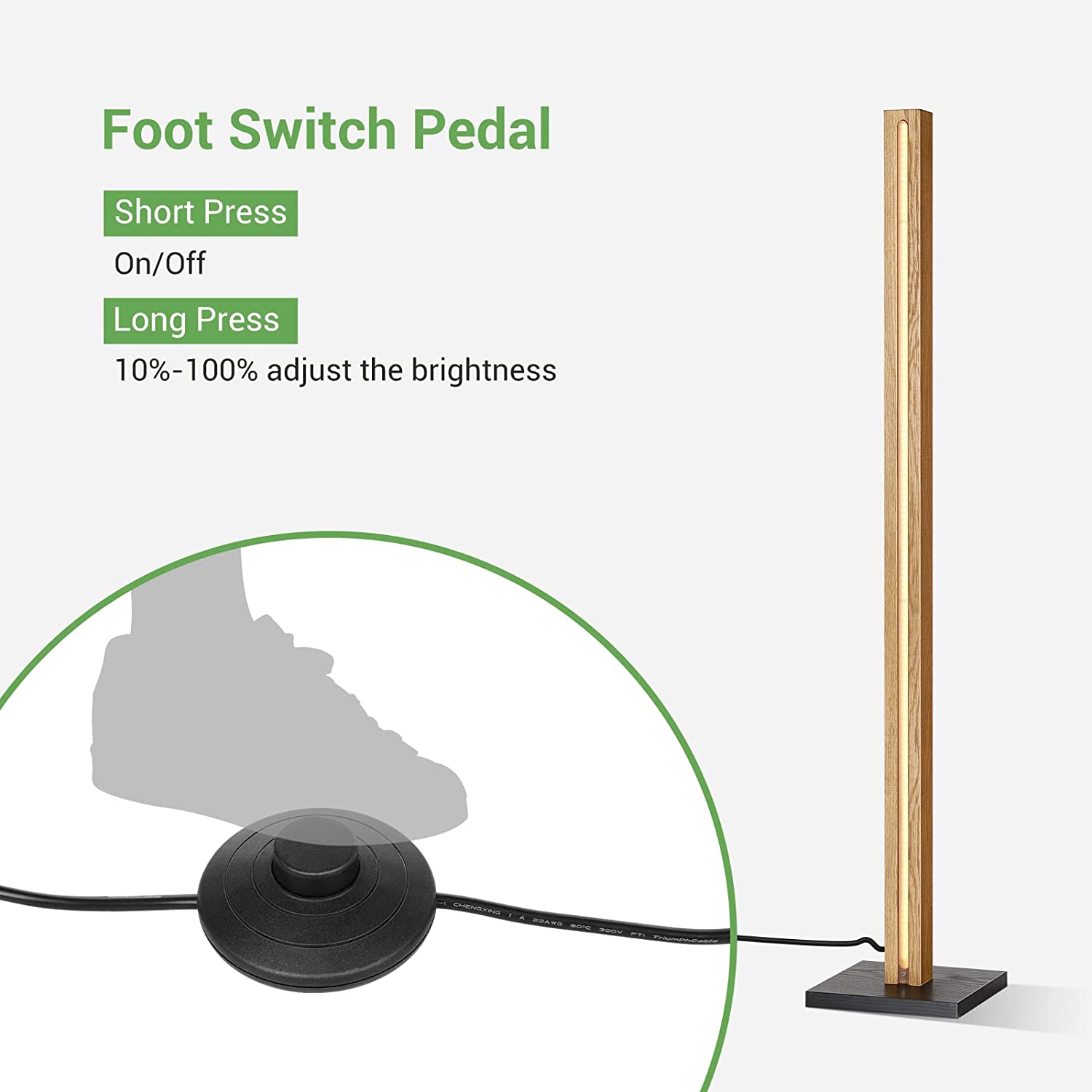 Conçu dans un souci de commodité, notre lampadaire LED est doté d'un interrupteur au pied pour une utilisation facile. Appuyez simplement sur l'interrupteur pour allumer ou éteindre la lampe, ce qui facilite le contrôle de l'éclairage sans avoir à chercher des boutons ou des interrupteurs. Ce détail de conception réfléchi améliore l'expérience globale de l'utilisateur, garantissant que l'utilisation de la lampe est aussi simple et intuitive que possible.
