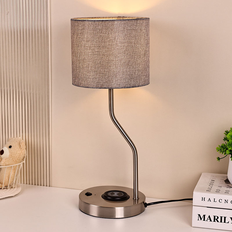 Lampe de bureau avec chargeur de téléphone sans fil, avec abat-jour en tissu, tension 5V1A